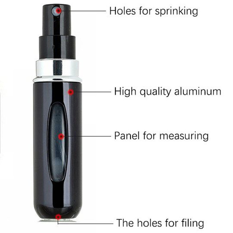 بدنه آن از فلز بادوام و محفظه داخلی آن از شیشه ساخته شده است که در برابر نشت، خراش یا شکستن ایمن است. ظرفیت محفظه آن 5 میلی لیتر است. والف یا پمپ اسپری آن کیفیت بالایی داشته و مایع داخل محفظه را به خوبی اسپری می کند.