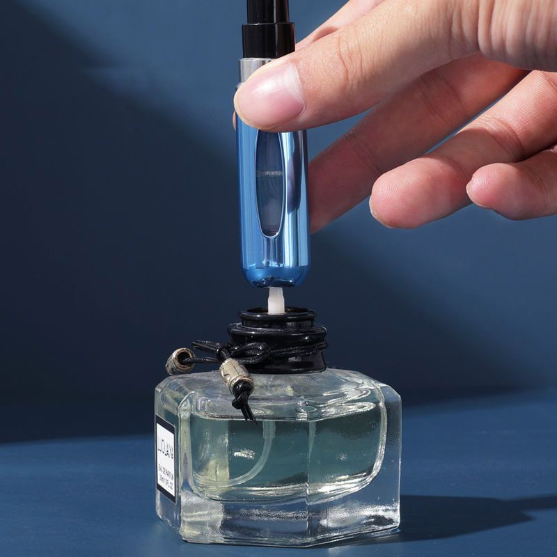 این محفظه عطر کوچک ایمن است و داخل کیف، جیب و یا چمدان نشت نمی کند. این محفظه قابل استفاده مجدد است و حمل آسانی دارد.