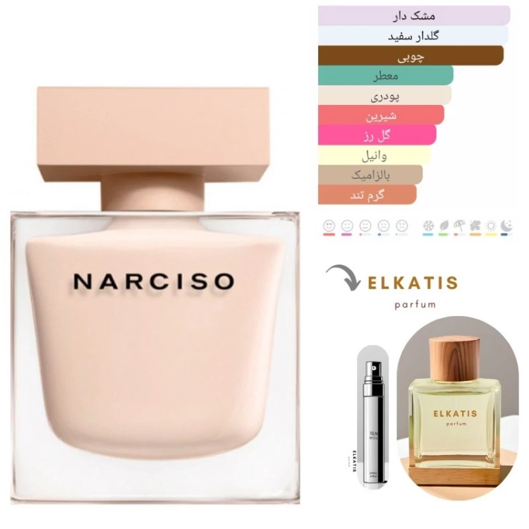 narciso rodriguez Narciso Poudree - نارسیس رودریگز پودری محصول سال 2016 می باشد و در گروه بویایی چوبی گلی مُشکی که عطرهای بسیار جذابی را در خود جای داده است، قرار دارد. سبک بویی این عطر معتدل می باشد از اسانس های بکار برده شده در این عطر می توان به رز ، یاس، شکوفه پرتقال ، مشک ، دانه تونکا ، نعناع هندی ، خس خس ، سدر اشاره کرد.