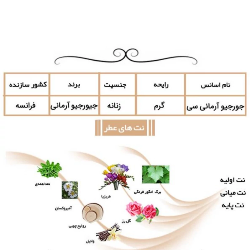مشتریان عزیز قیمت عطر ها بر اساس یک میل محاسبه شده است مقدار حجم عطر را بر اساس مقدار مورد نیاز خود تغییر دهید . تمامی محصولات تضمین کیفیت و قیمت دارند/به قیمت پخش عرضه میشود.شیشه عطر مورد نظر شما لطفا جداگانه ثبت شود . حجم های موجود 💥۱۰میل 💥۱۵میل 💥۲۰میل 💥۲۵ 💥۳۰میل 🔥۳میل عطر رایگان ارسال میگردد🔥 💥۵۰میل 🔥۵میل عطر رایگان ارسال میگردد🔥 💥۶۰میل ۶میل عطر رایگان 💥۷۰میل ۷میل عطر رایگان 💥۱۰۰میل 🔥۱۰میل عطر رایگان ارسال میگردد🔥 رایحه شهد انگور فرنگی سیاه در نتهای اولیه، روایح فریزیا و رز سنتیفولیا در نتهای میانی و روایح مشکفام و چوبی (برگرفته از چوبهای روشن) نیز در نتهای پایه این عطر جای گرفتهاند. «اس آی ادو پرفیوم» برای زنان امروزی و مدرنی ساخته شده است که هم قوی هستند و هم زنانگی بینقصی دارند و جاذبههای کاریزماتیک آنان با ظرافتهای خاصی گره خورده است؛ زنانی که نماد ظرافتها و سبک شیک ایتالیایی هستند. Si محصولی از شرکت جیورجیو آرمانی است که با نامی خاص و ظاهری متفاوت در سال 2013 تولید و معرفی شد. این ادکلن رایحهای گرم دارد و شیرین است. Si ظاهری ساده و در عین حال متفاوت دارد. شاید نقطه تمایز در طراحی این محصول، نوع درب آن است که انحنای خاصی در آن به کار رفته است. الکاتیس بهرهمندی از این محصول را به شما پیشنهاد میکند. نوع عطر خالص برند جیورجیو آرمانی عطار کریستین ناگل طبع گرم سال عرضه 2013 گروه بویایی چایپر میوه ای کشور مبدأ ایتالیا مناسب برای بانوان اسانس اولیه برگ و جوانه انگور فرنگی اسانس میانی رز ، فریزیا اسانس پایه وانیل ، نعناع هندی ، روایح چوبی، آمبروکسان