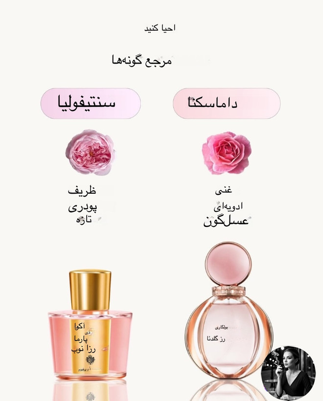 … «رزها فقط زیبا نیستند… دنیایی از تنوع، تاریخ و رایحه در دل خود دارند. امروز بیش از ۳۰۰ گونه رز در جهان شناخته شده و هزاران نوع هیبریدی از آنها پرورش داده شده است. هر نوع رز، رایحه، دوام و کاربرد خاص خودش را دارد Damask Rose (رز دمشقی): با عطری عمیق و گلی، رایجترین رز در صنعت عطرسازی لوکس. Centifolia Rose (رز صدبرگ): رایحهای شیرین و لطیف با ماندگاری بالا؛ معروف به “رز فرانسوی”. Tea Rose (رز چای): ظریف و مدرن با نتهای سبک و تازه. Wild Rose (رز وحشی): طبیعی، نادر و بسیار ماندگار در نتهای پایهی عطر. هر رز، امضای خاص خودش را روی پوست میگذارد تو کدوم نوع رز رو بیشتر دوست داری؟ برام بنویس… برای انتخاب رز مناسب شخصیتت، بده . . بنظرت شما کدومش خوبتره؟!