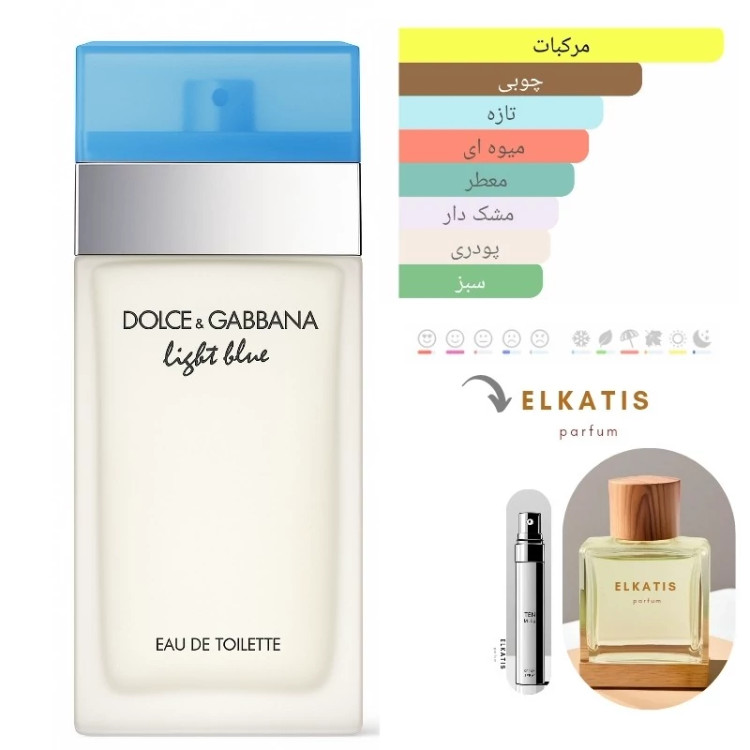 Dolce & Gabbana Light Blue – عطر زنانه و مردانه اصل با رایحهای خنک و مرکباتی. ترکیبی از لیمو، سیب سبز و فلفل با نتهای قلبی یاسمین و بامبو و پایهای از سدر و مشک. اورجینال و ماندگار، مناسب استفاده روز و تابستان، خرید آنلاین در نیلارز پرفیوم.